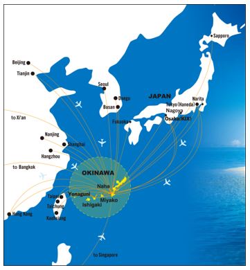 Okinawa is easily accessible from Mainland Japan. Up to 35 Japanese cities including Tokyo, Osaka, Sapporo and Fukuoka offer domestic flights to Okinawa. Flight times range between 2hrs 10mins (Osaka) & 2hrs 45mins (Tokyo) to 3hrs 30mins (Sapporo).